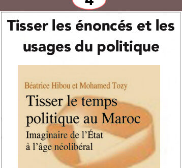 Déjà, au seuil du livre, saute aux yeux les noms des co-auteurs, Béatrice Hibou et Mohamed Tozy, ayant déjà signé à deux, depuis presque trois décennies, plusieurs articles, dans l’entrelacs des sciences politiques, de l’économie politique et de l’anthropologie. Cela augure d’emblée d’une démarche interdisciplinaire, tressée, éloignée des démarches normatives et institutionnalistes qui prédominent dans ces champs respectifs. Puis à la lecture du titre composé, apparaît au premier plan, l’acte de Tisser le temps politique au Maroc, puis au second plan, la volonté d’exposer au lecteur, comme issu de ce métier à tisser, une mise en lien et/ou en tension, appelée Imaginaire de l’Etat à l’âge néolibéral.